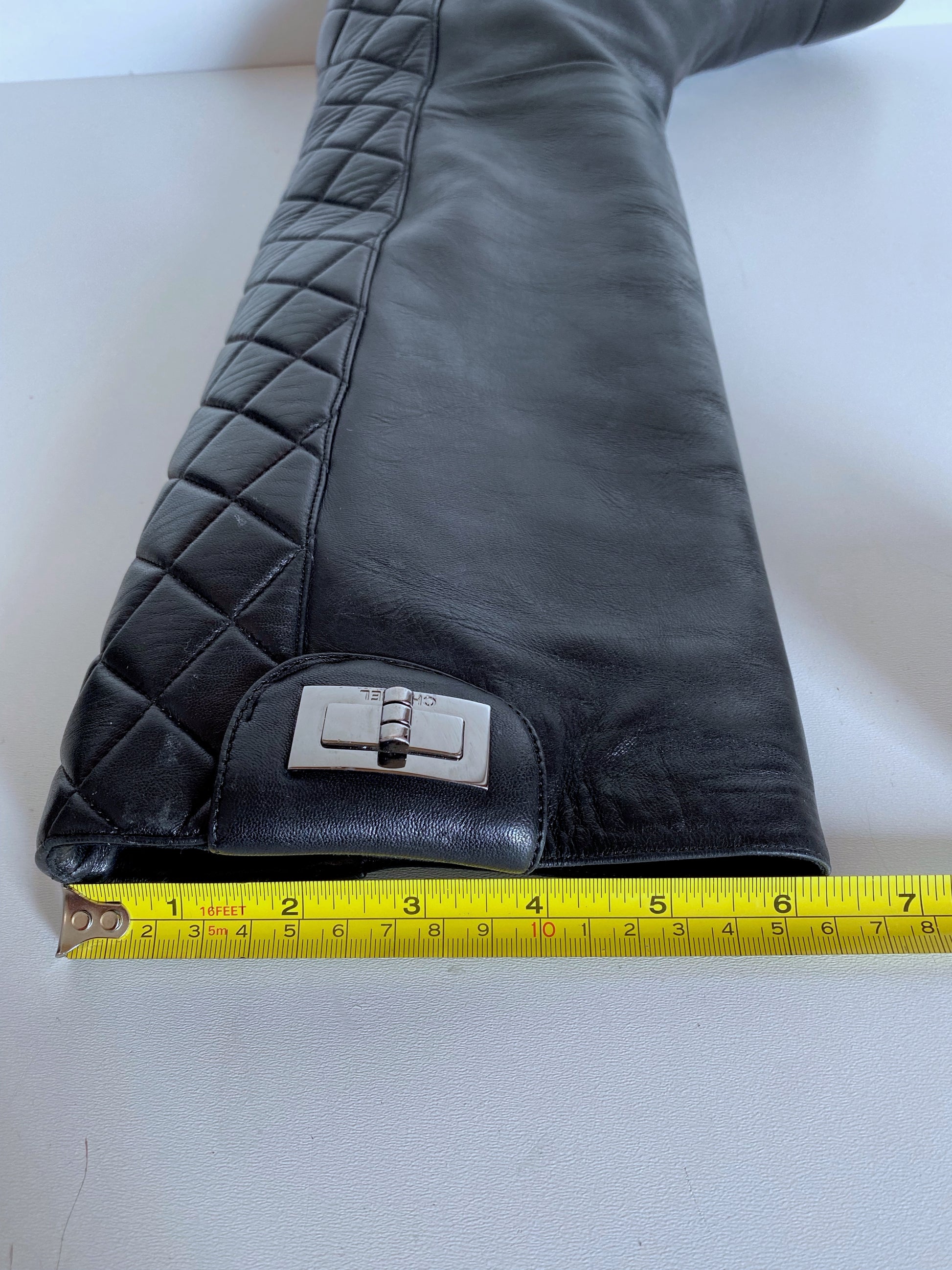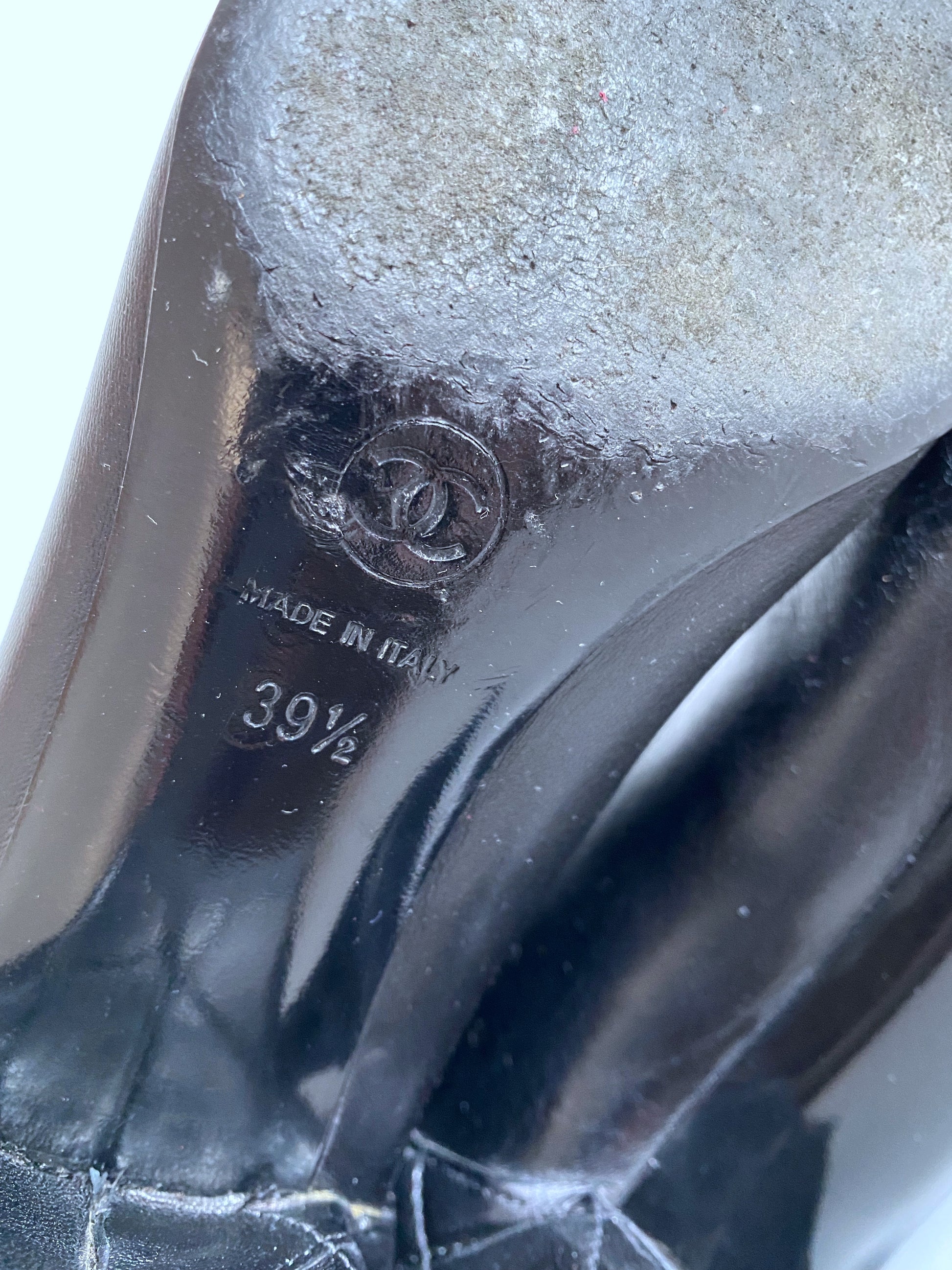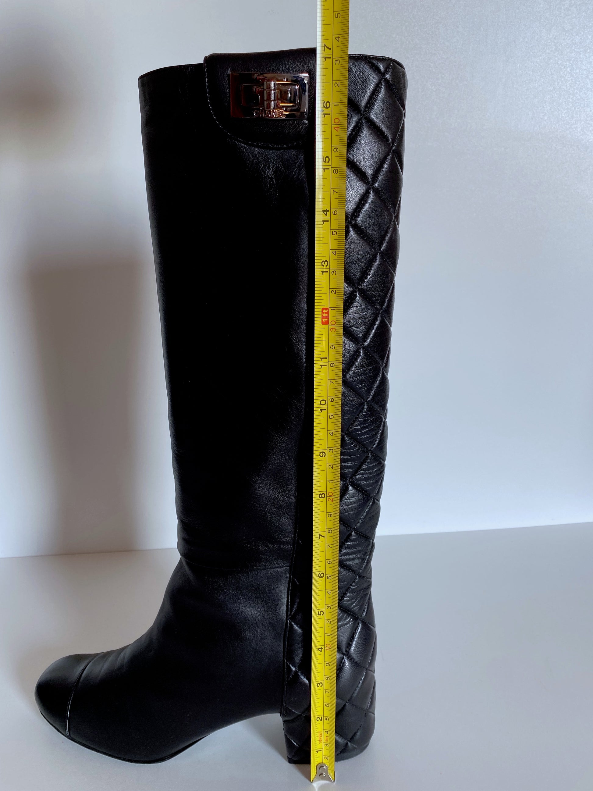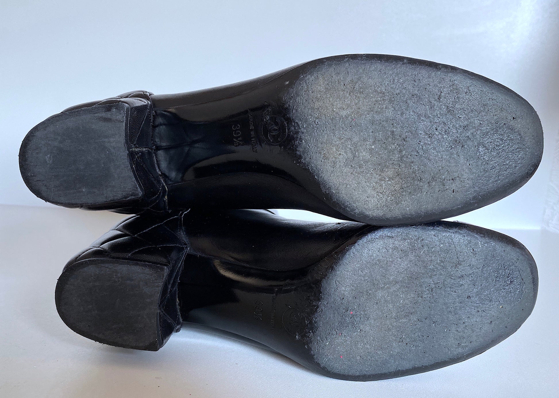 Chanel black leather boots.