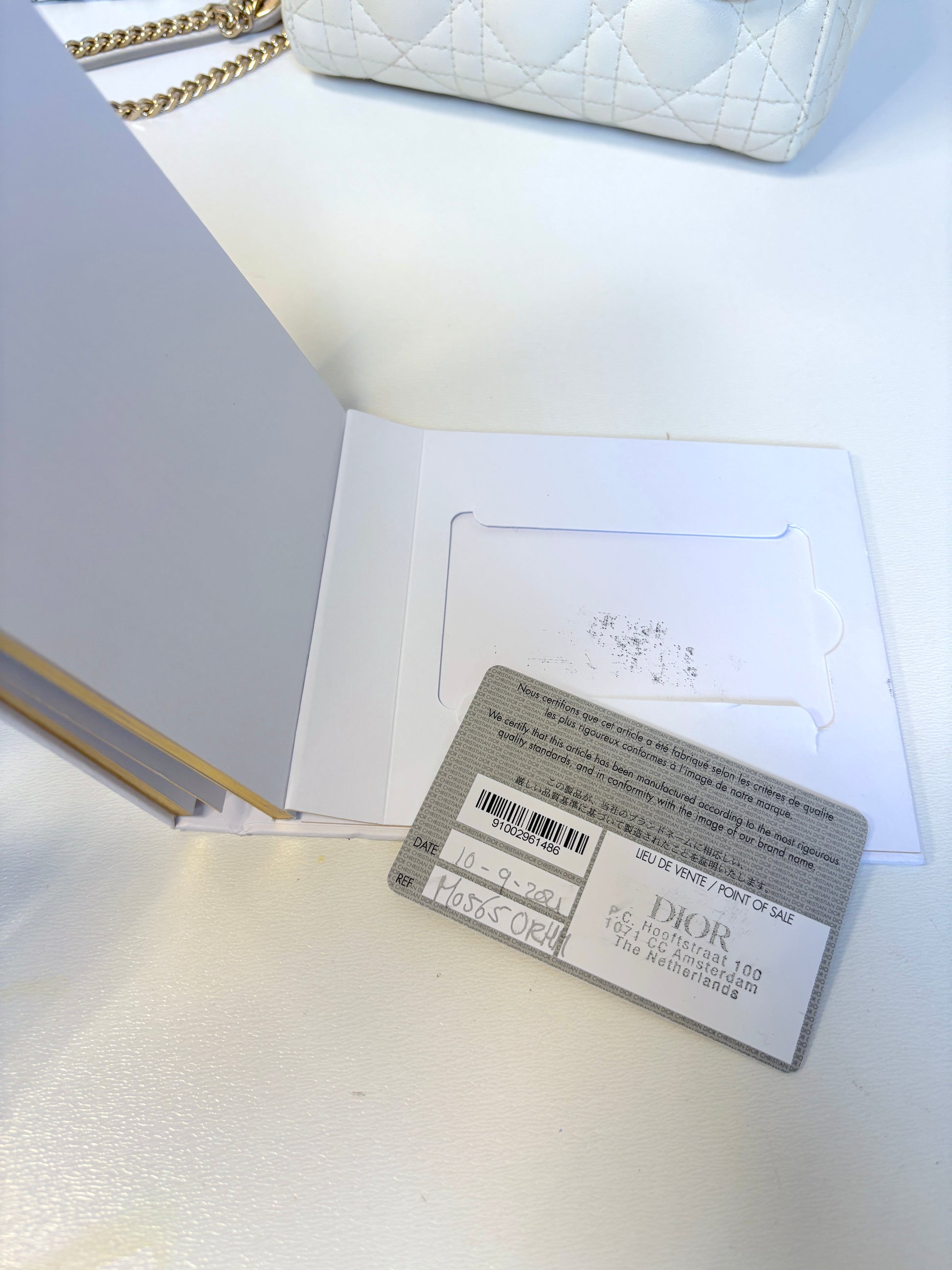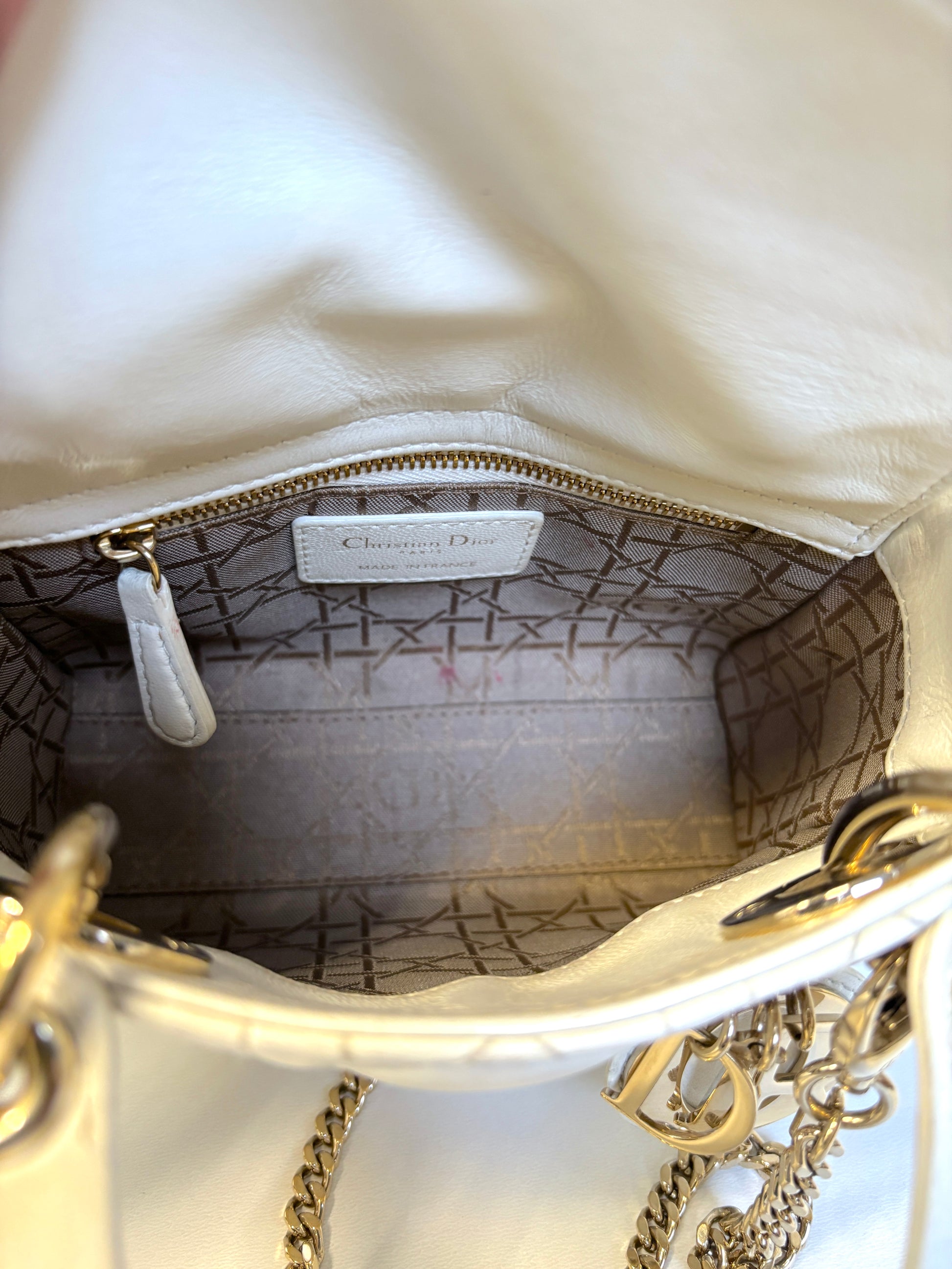 Dior "Lady Dior" mini in ivory white and light golden hardware.