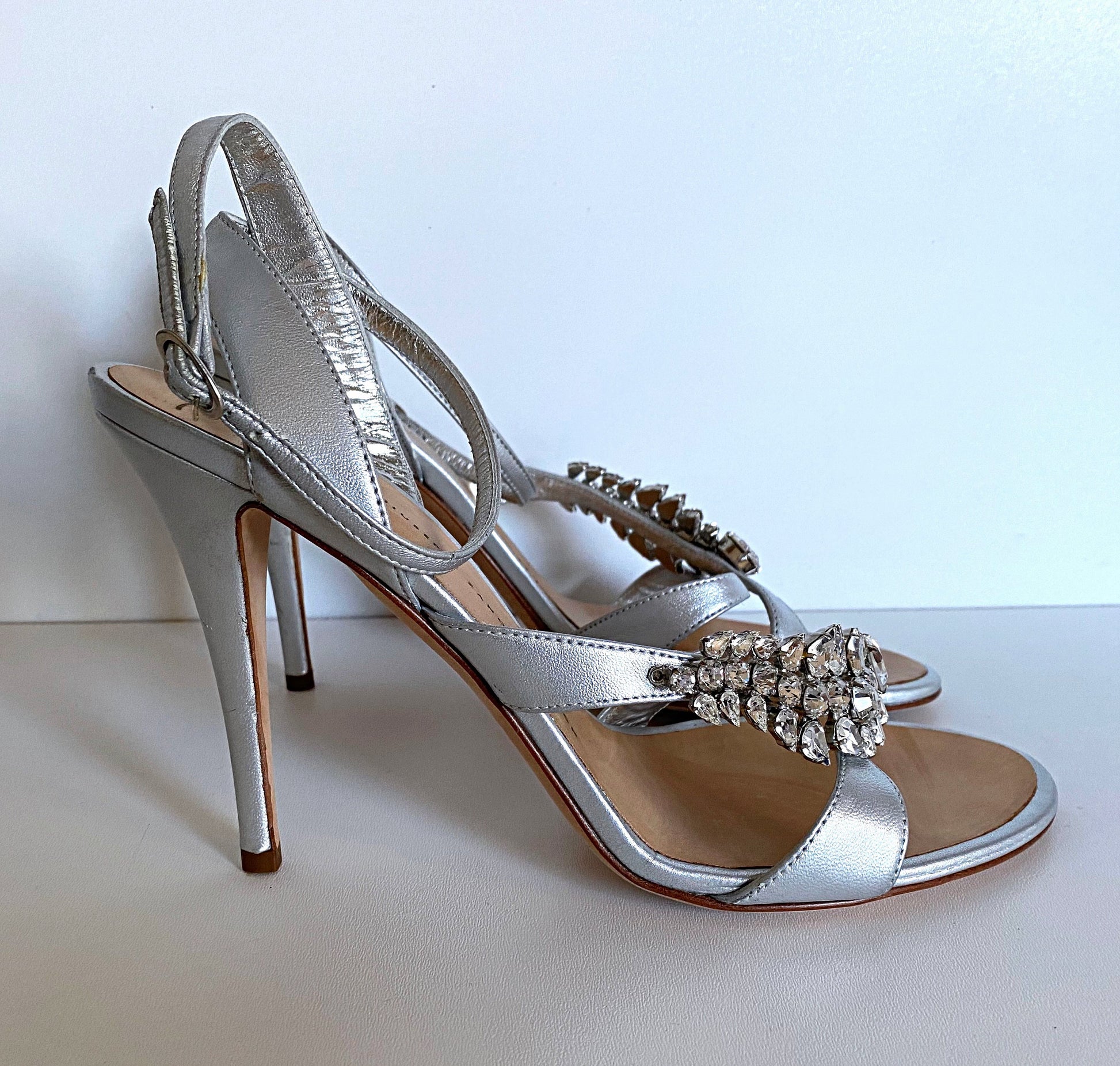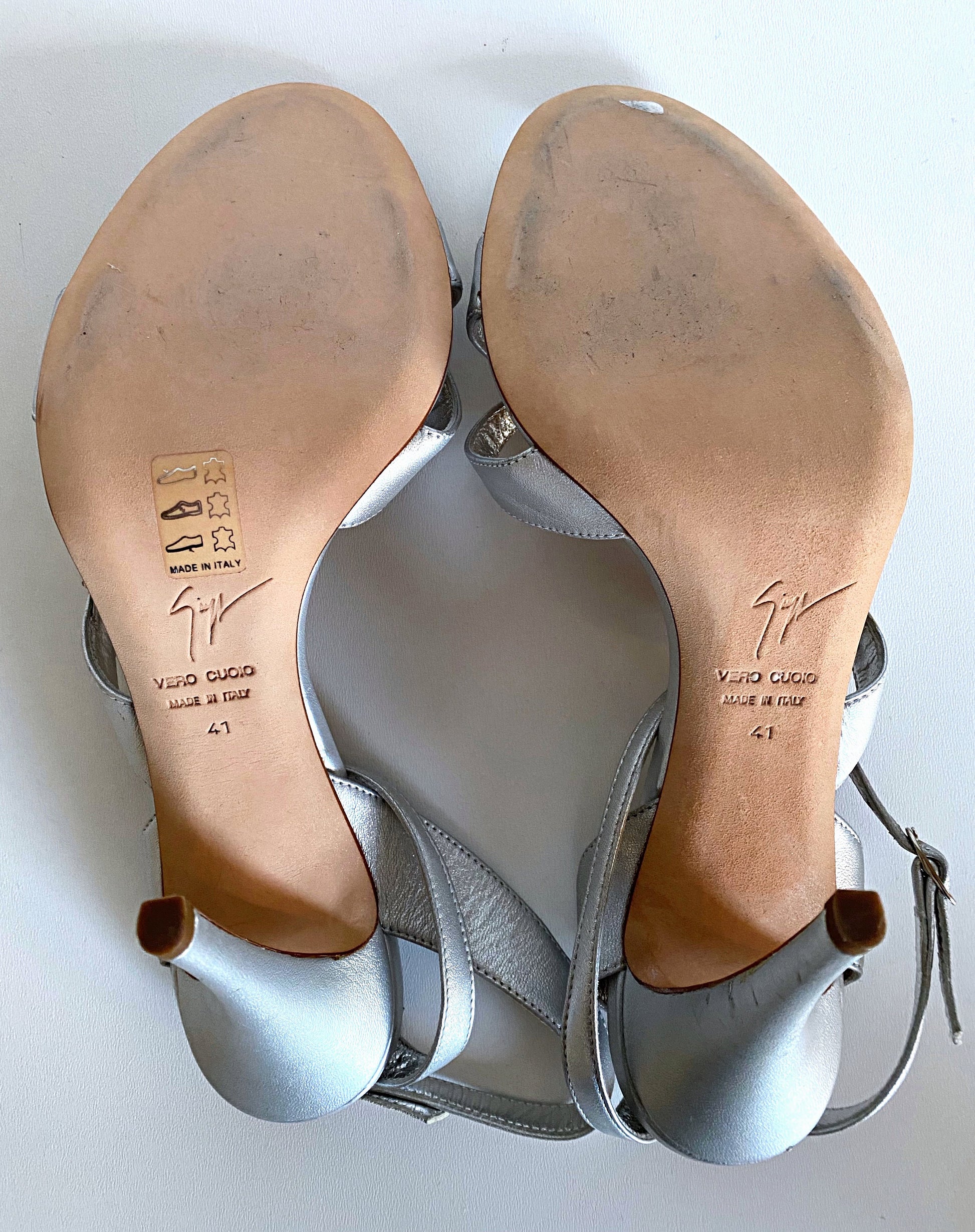 Giuseppe Zanotti silver leather sandals with crystal stones.