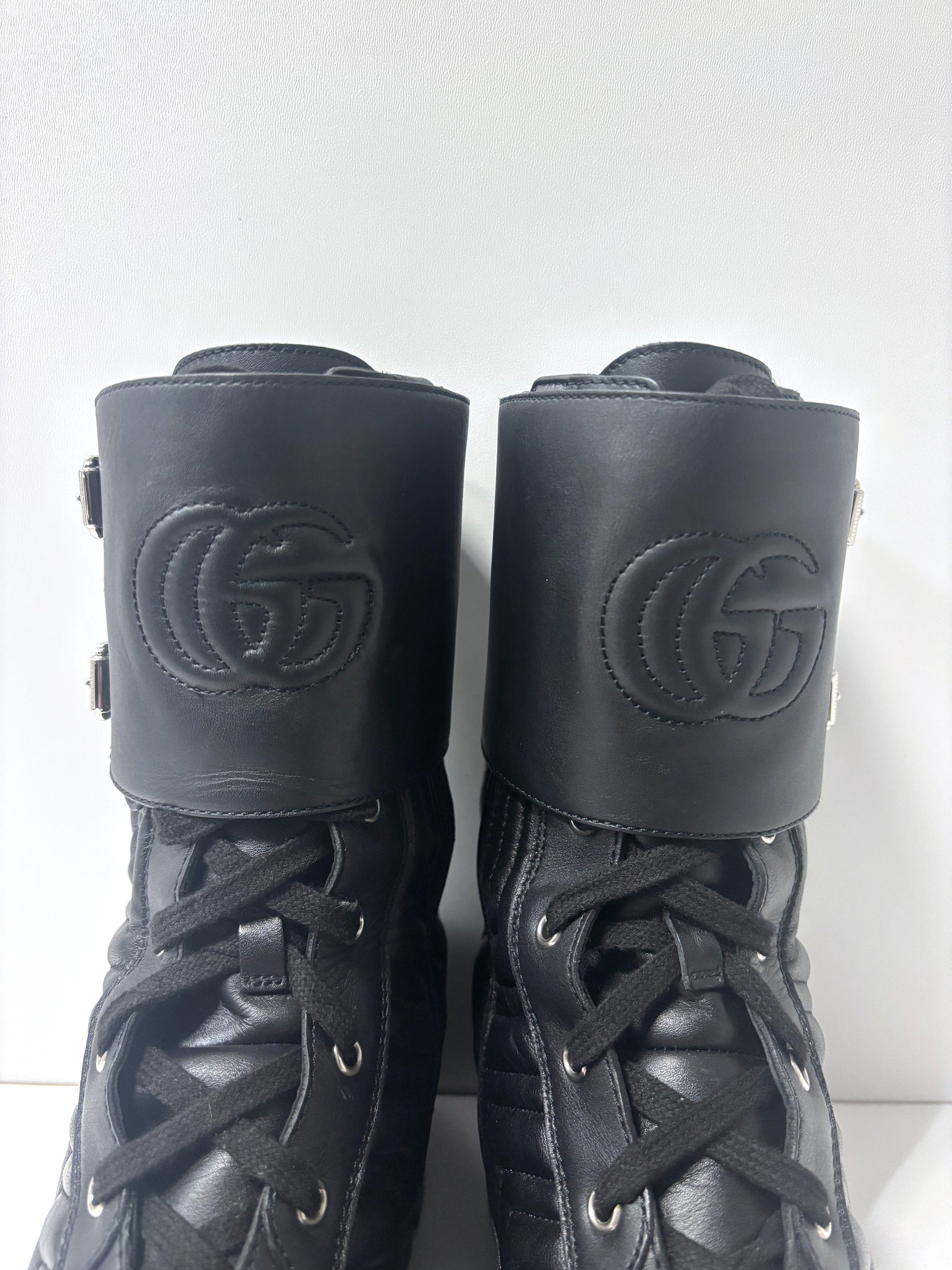 Gucci black leather "combat" boots.