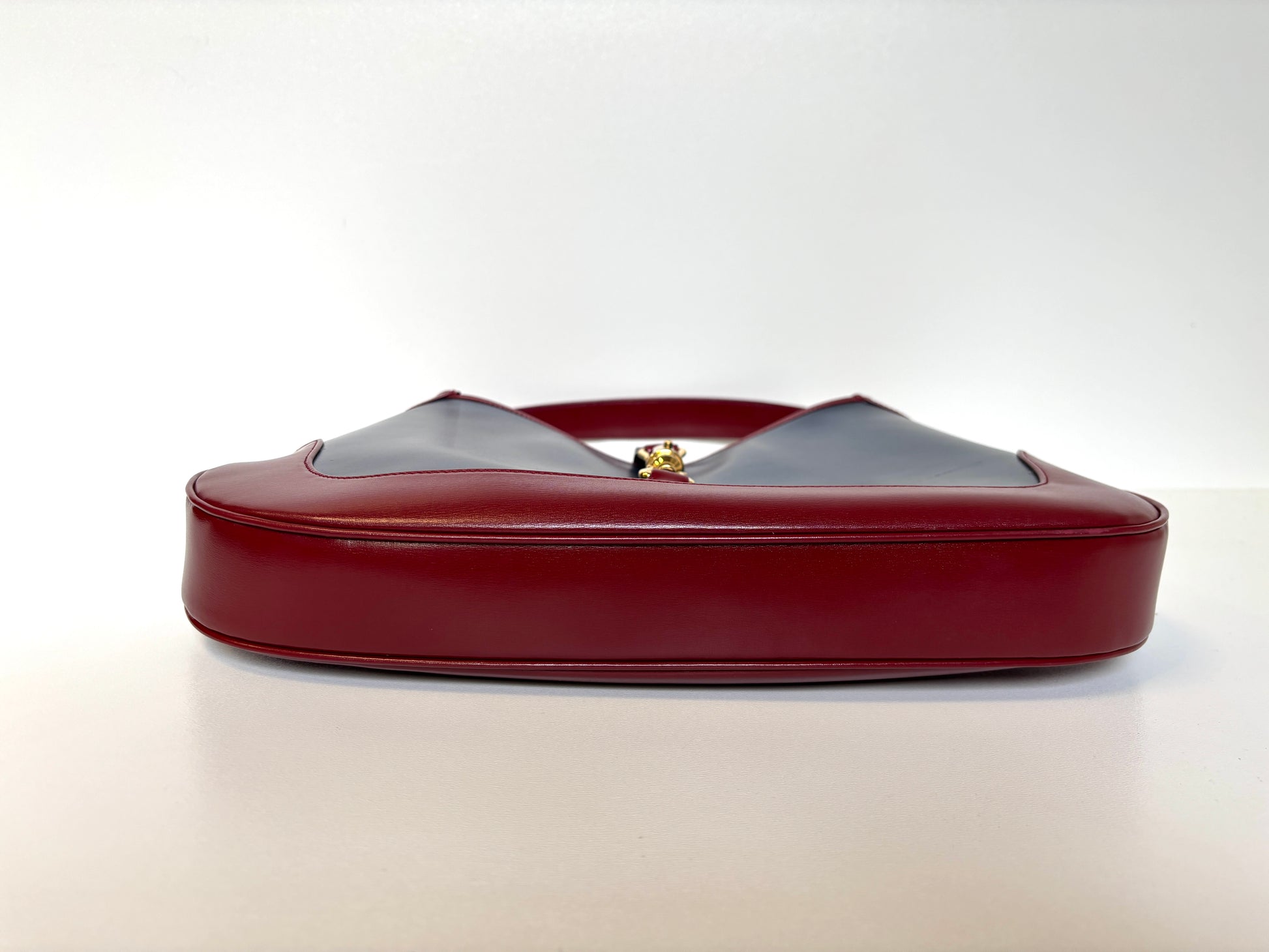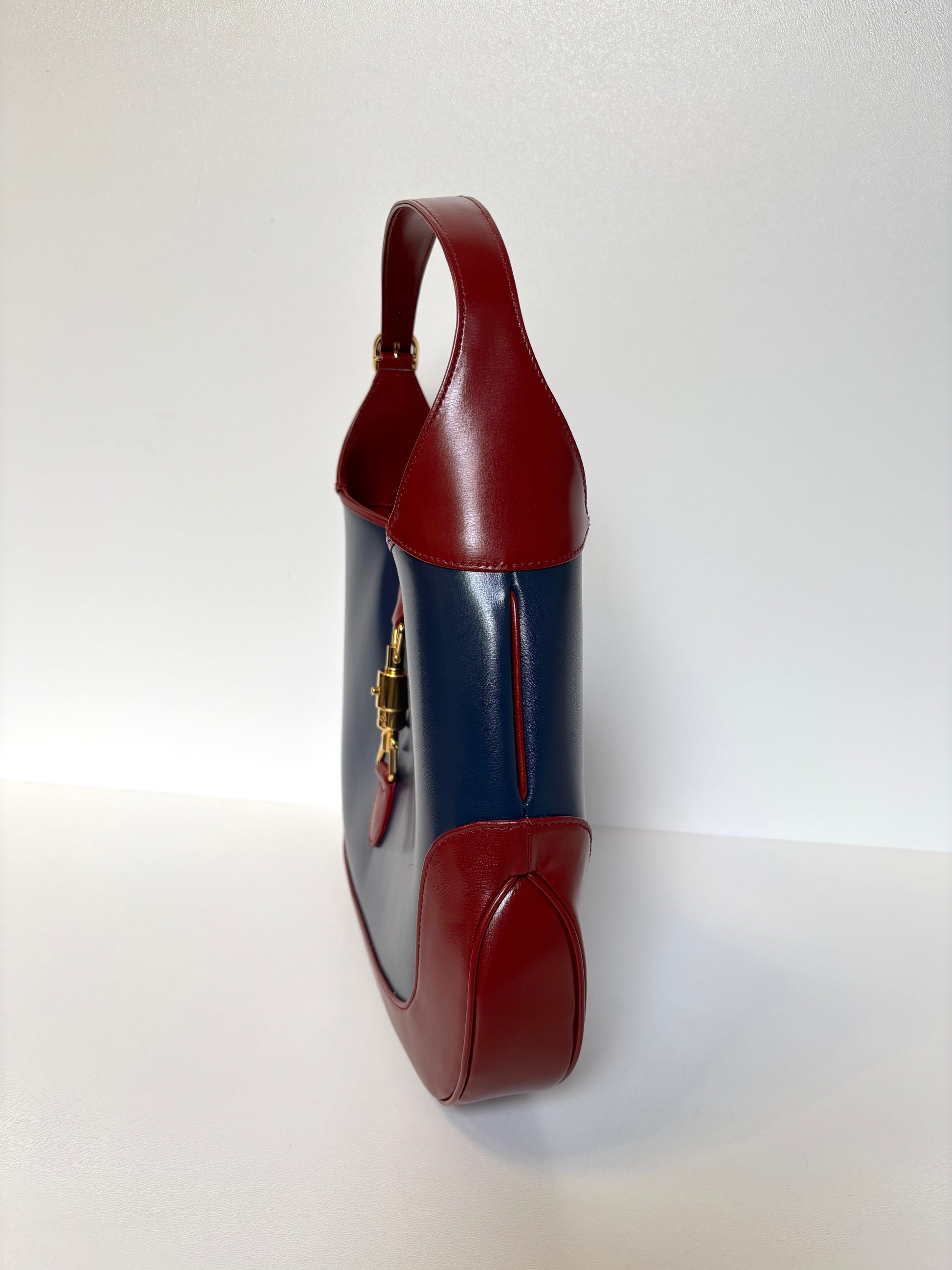 Superb Gucci Jackie 1961 in beautiful dark blue and bordeaux color. Golden hardware. Additional strap to be used as shoulder or crossbody bag. Maintained beautifully.