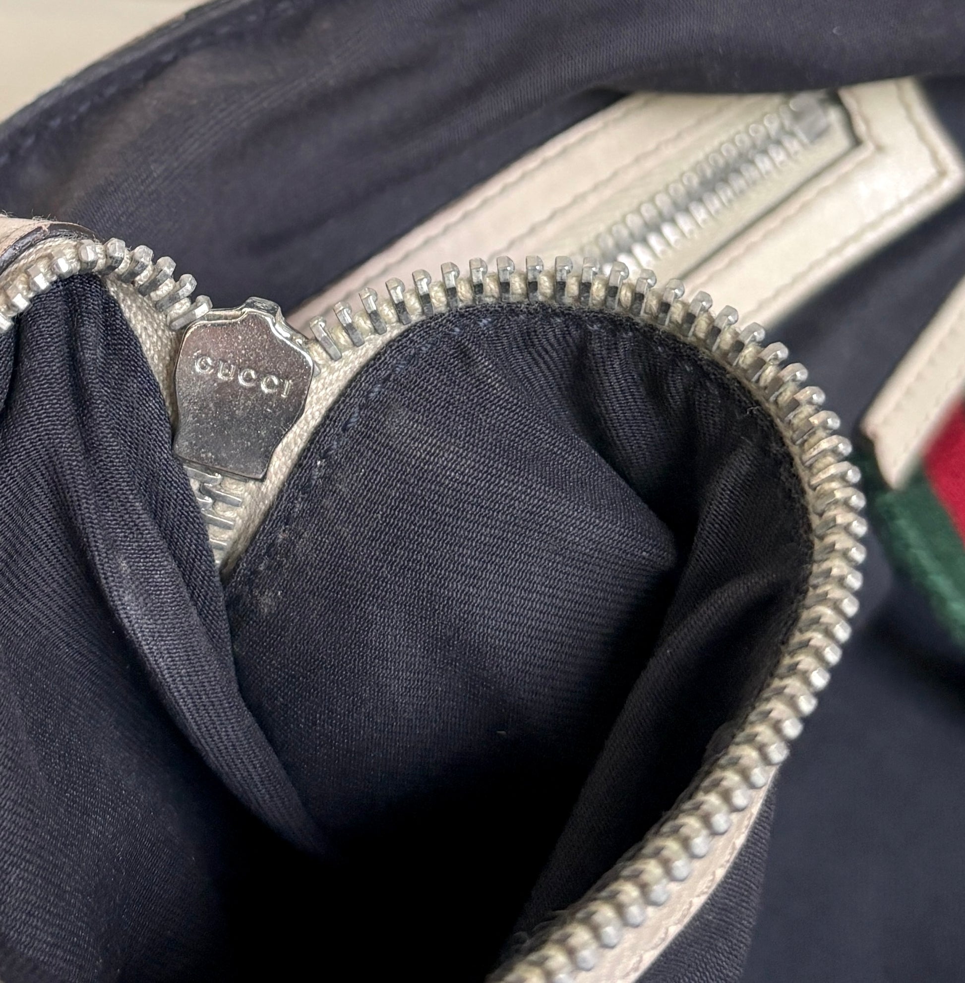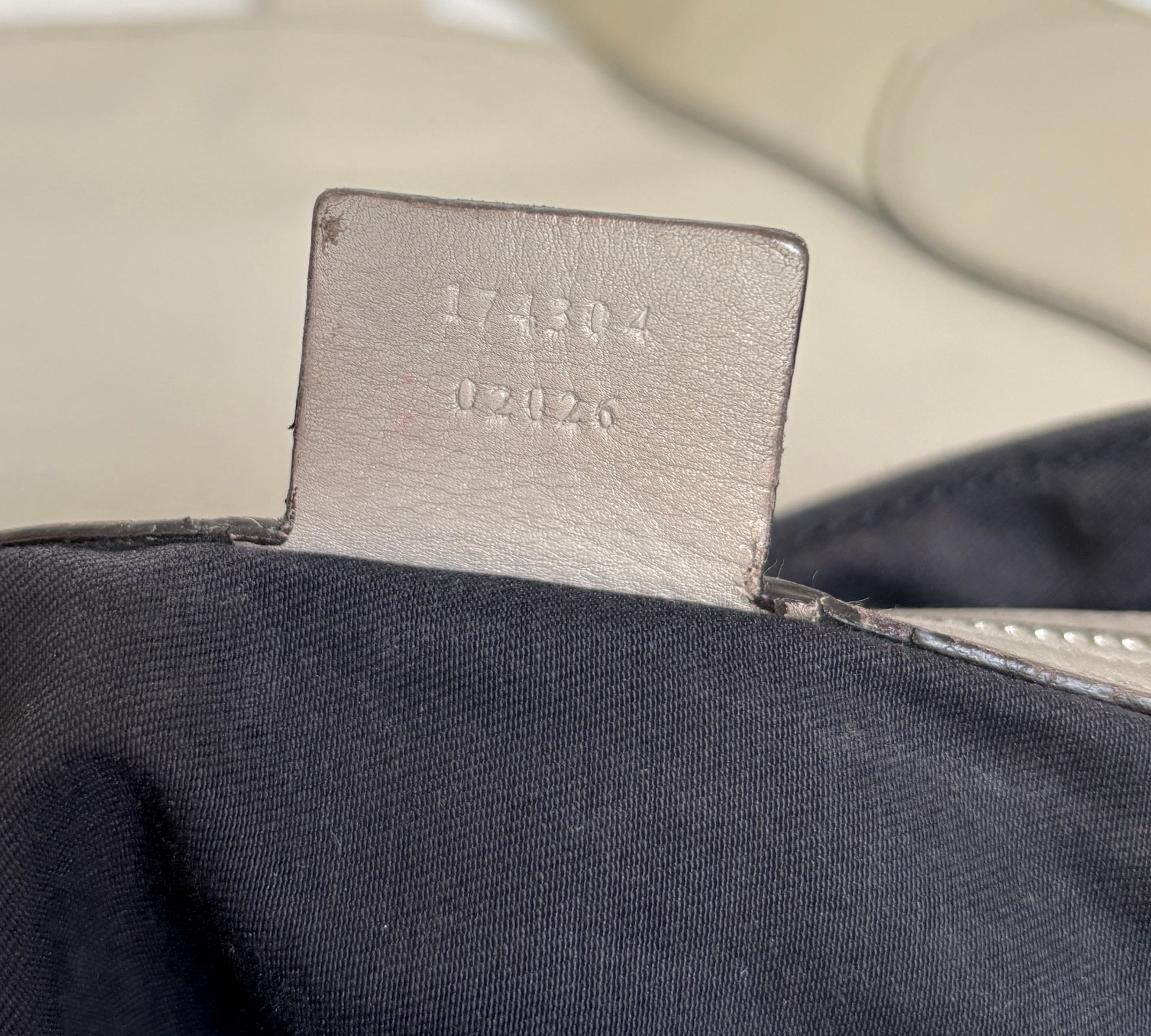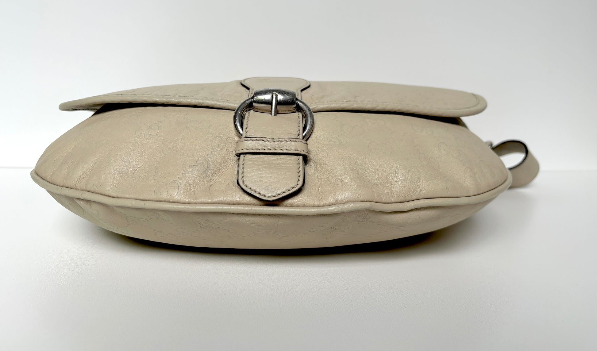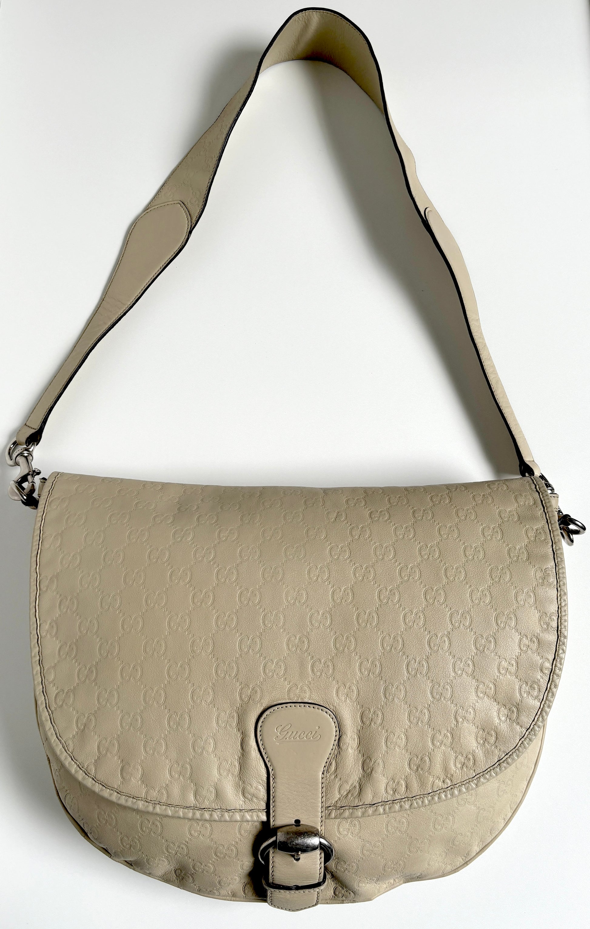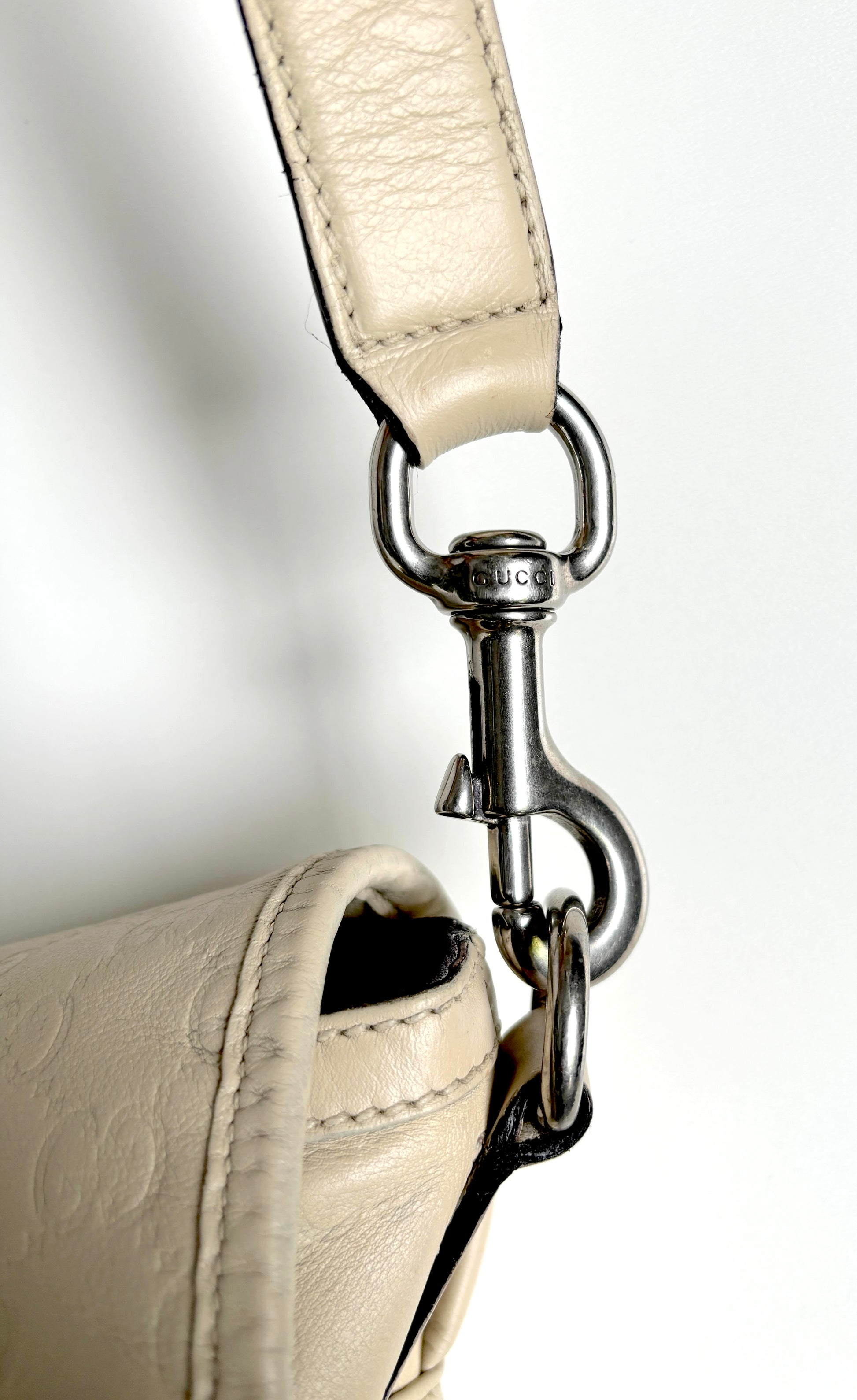 Gucci leather shoulder flap bag in beige leather with silvery hardware.