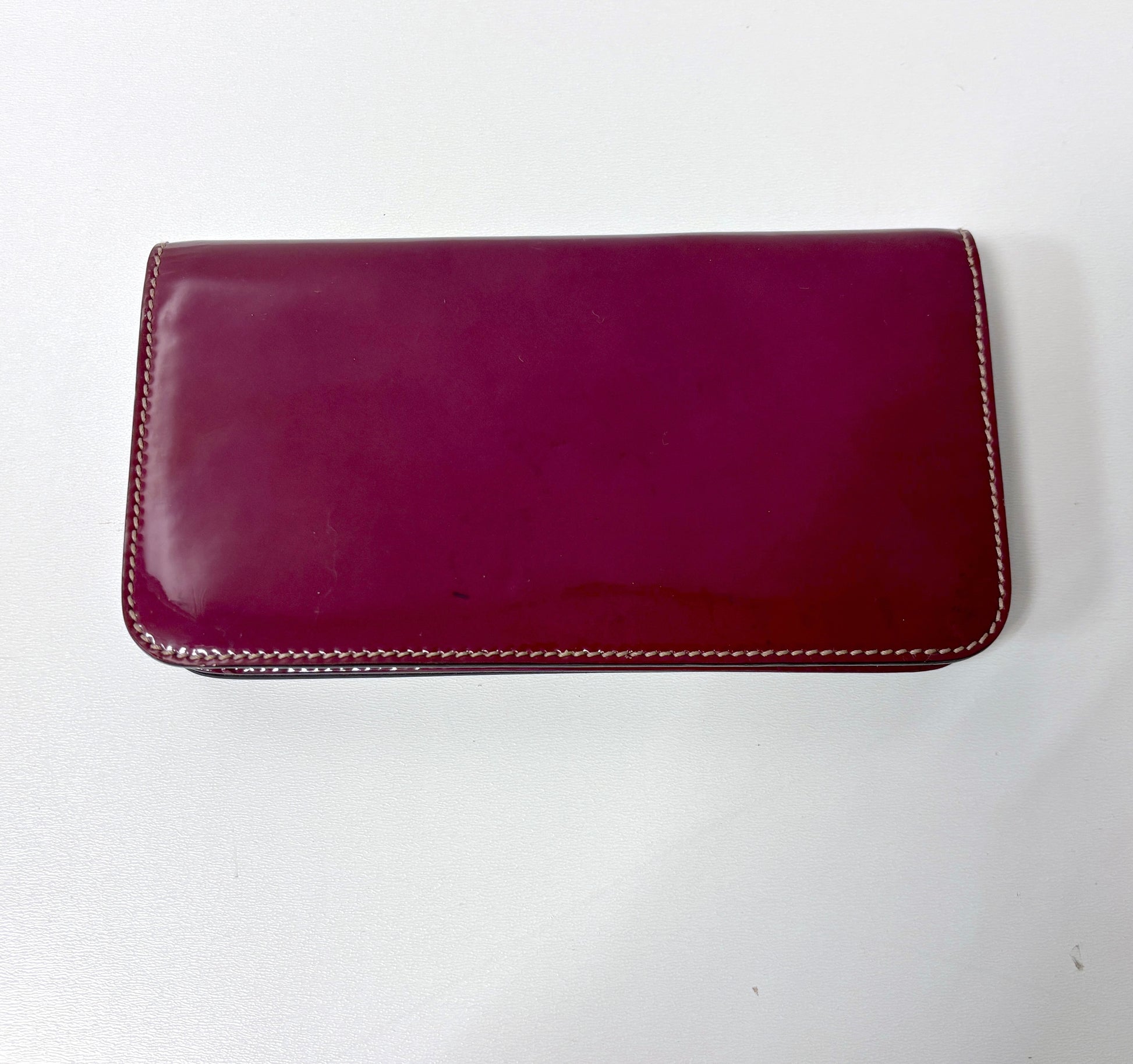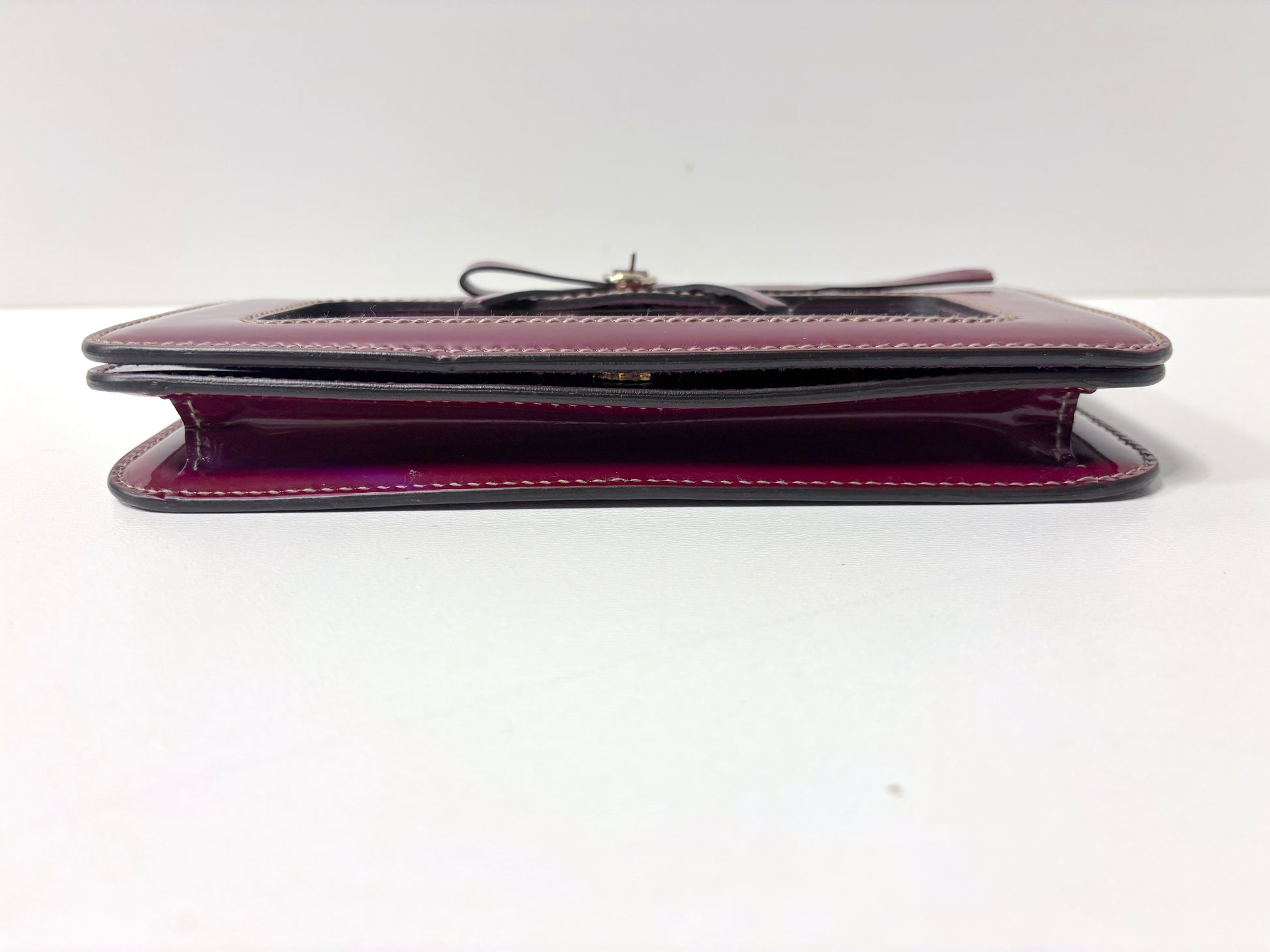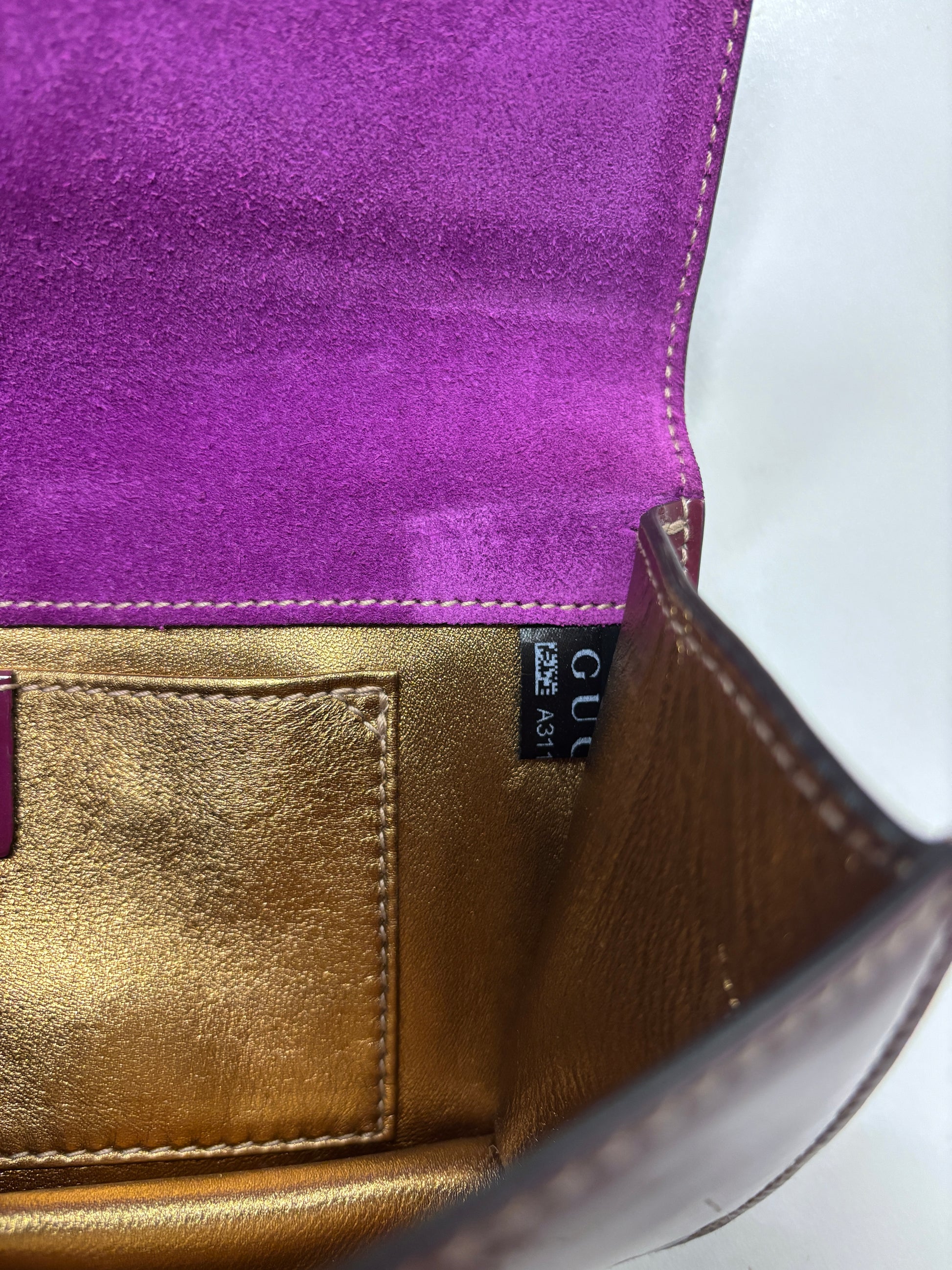 Beautiful vintage patent leather clutch with embedded mirror with Gucci signature.