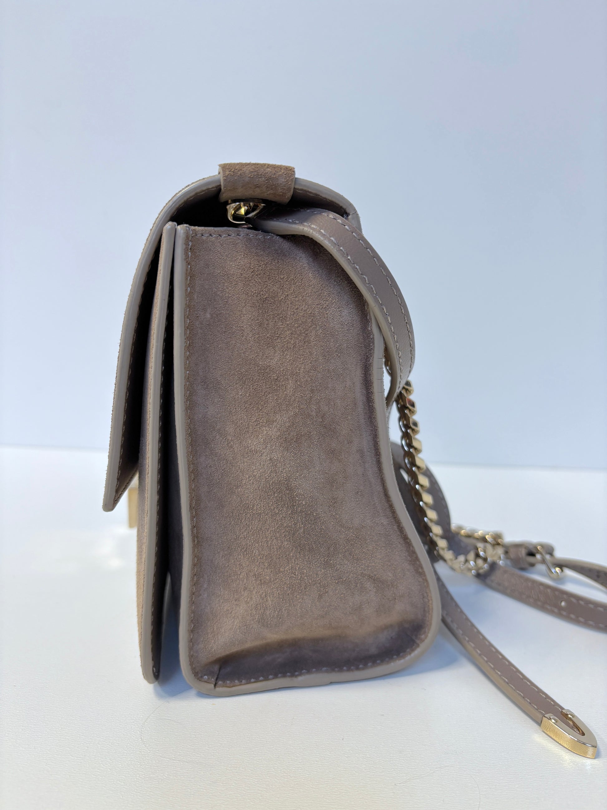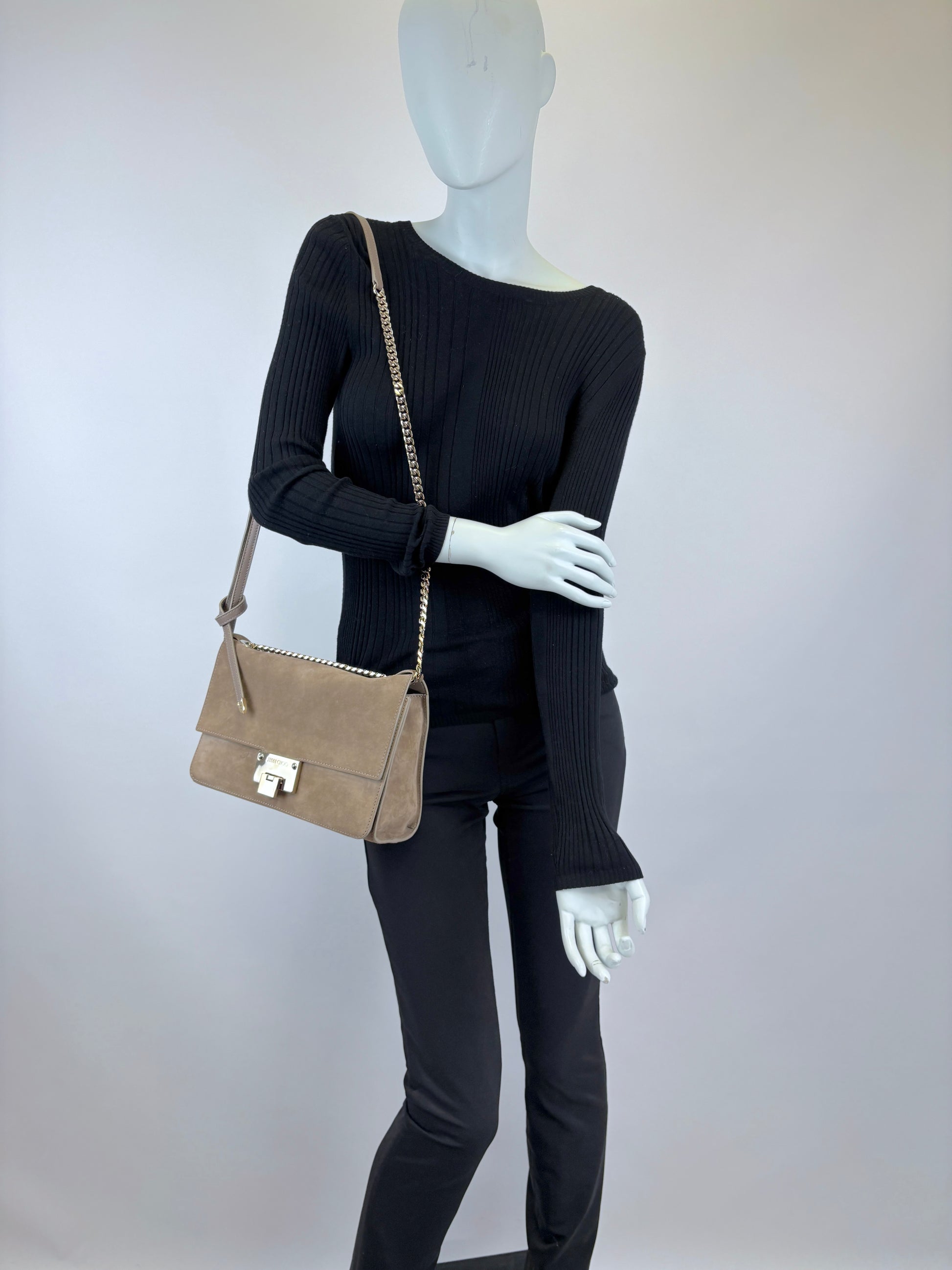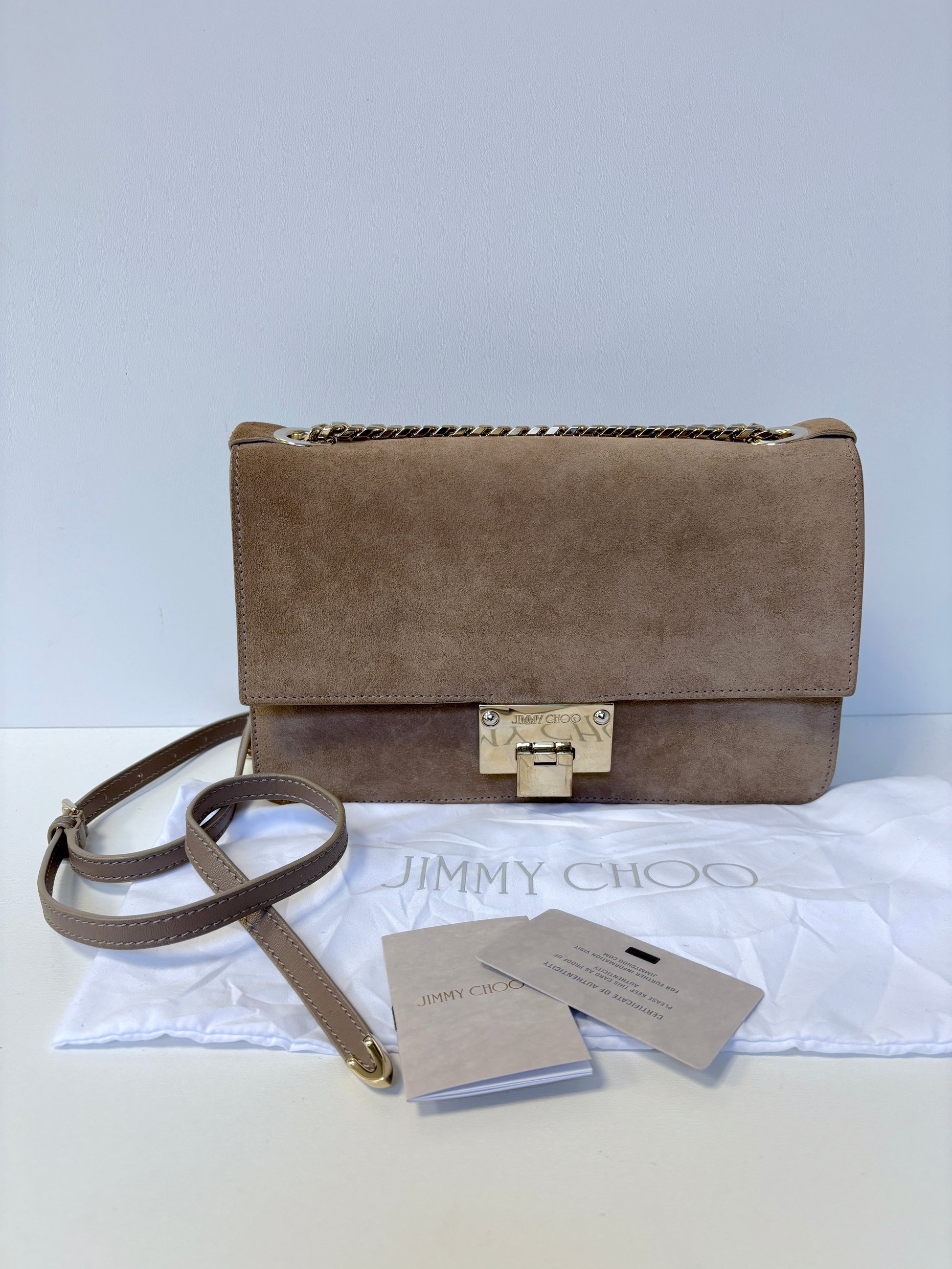 Jimmy Choo brown suede "Rebel" shoulder bag.