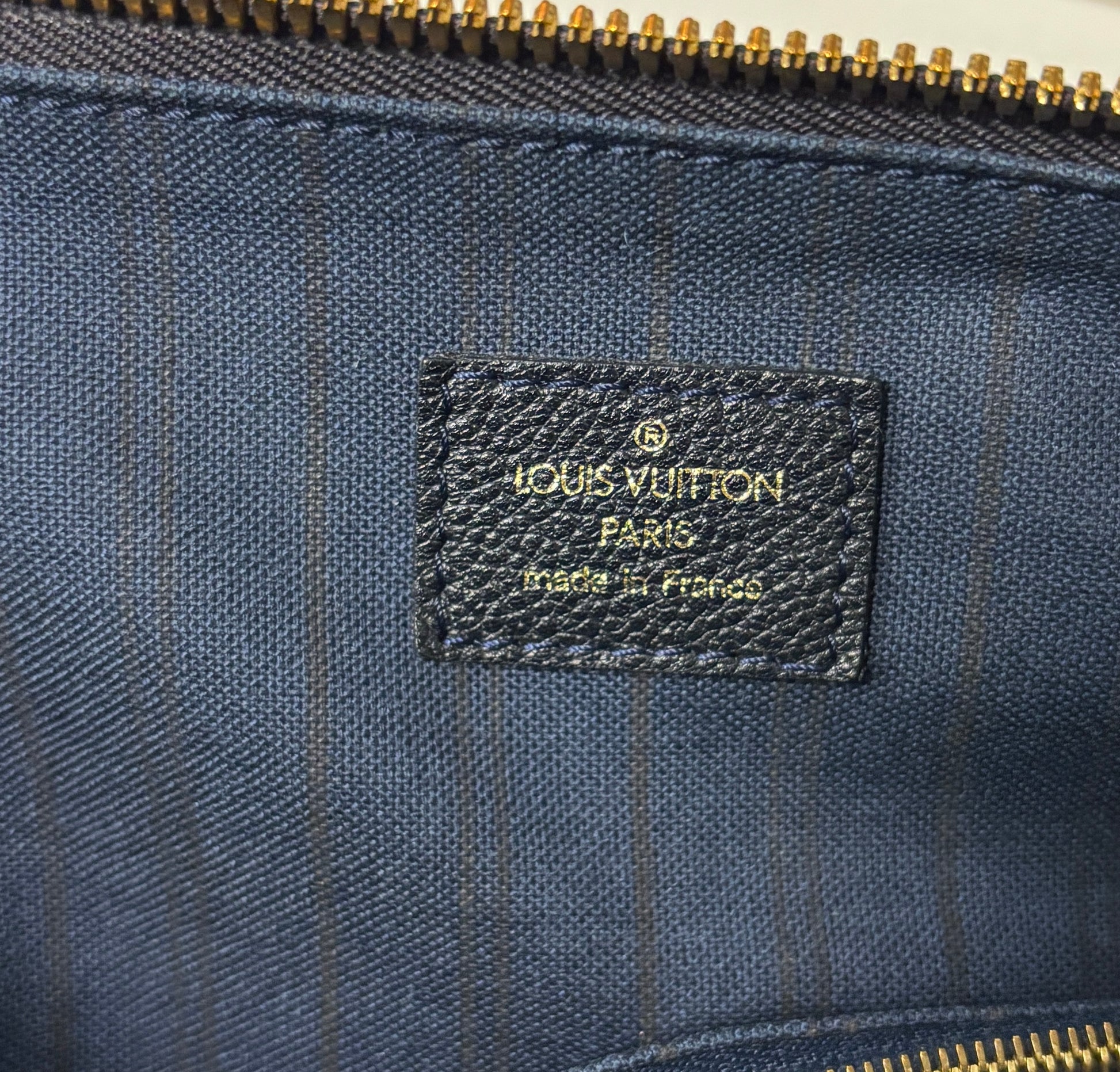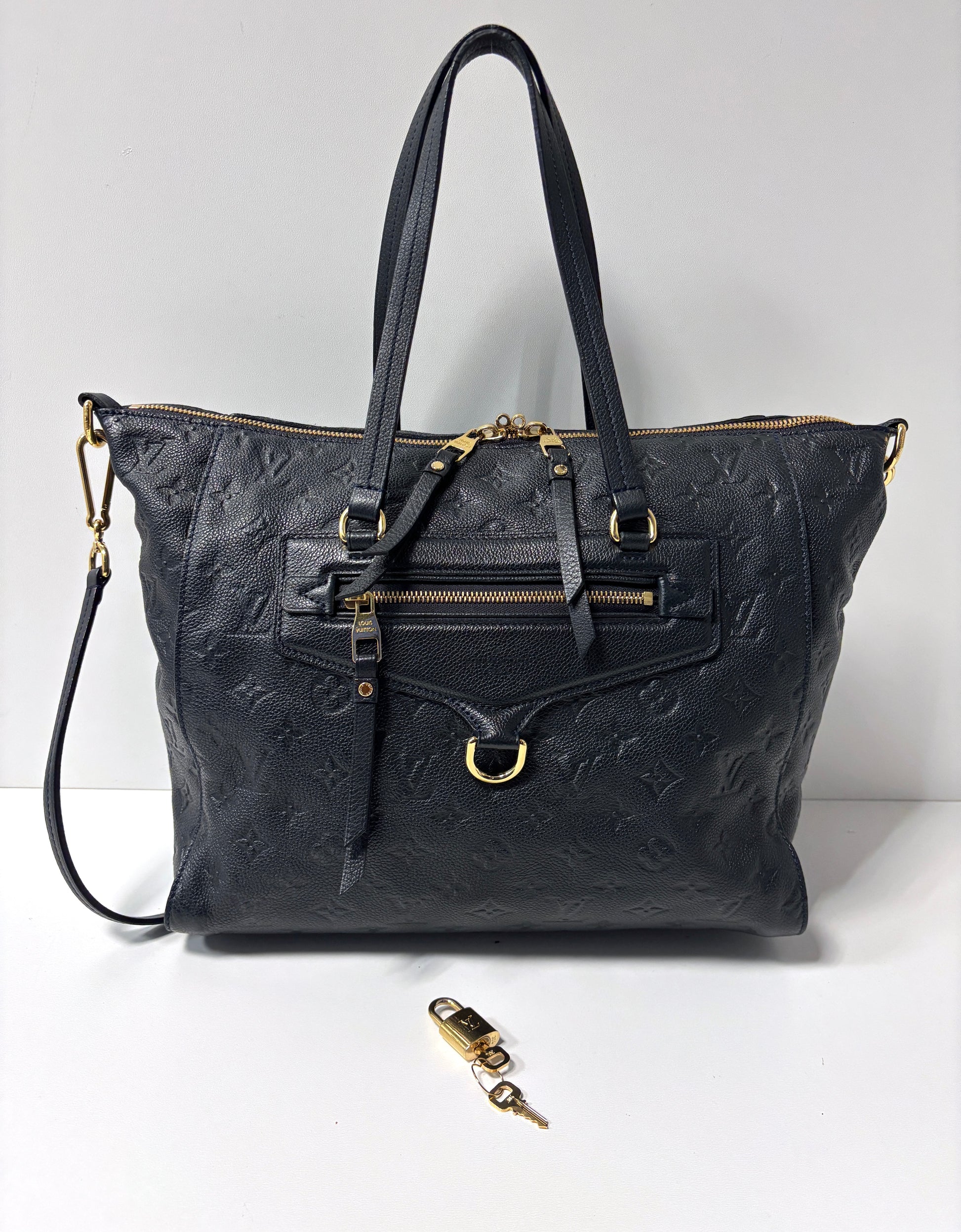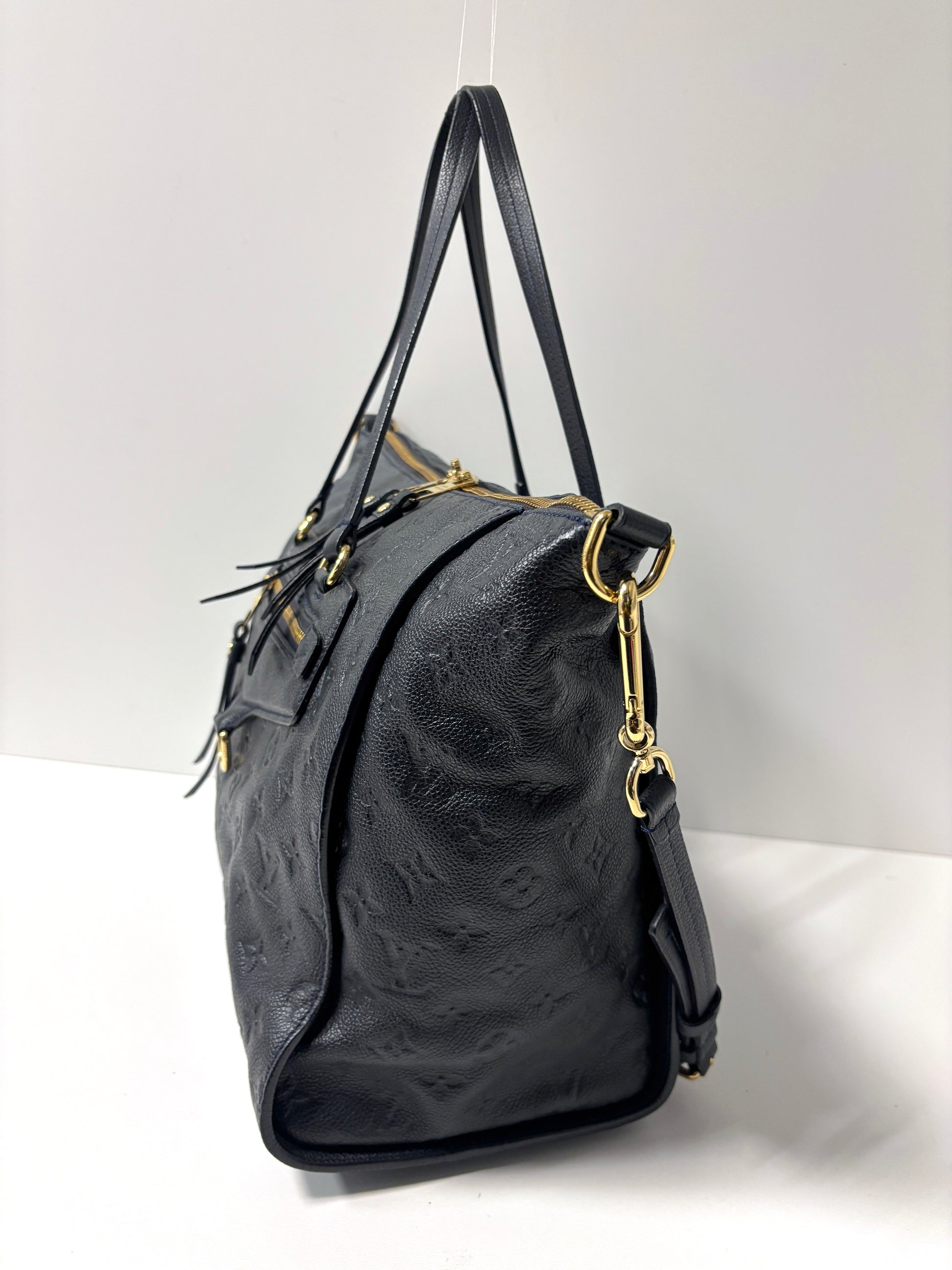 Louis Vuitton "Lumineuse" black leather shoulder bag. Hardware details in golden hardware. Micro sign in the handler edge, minimum and completely unnoticeable when wearing.