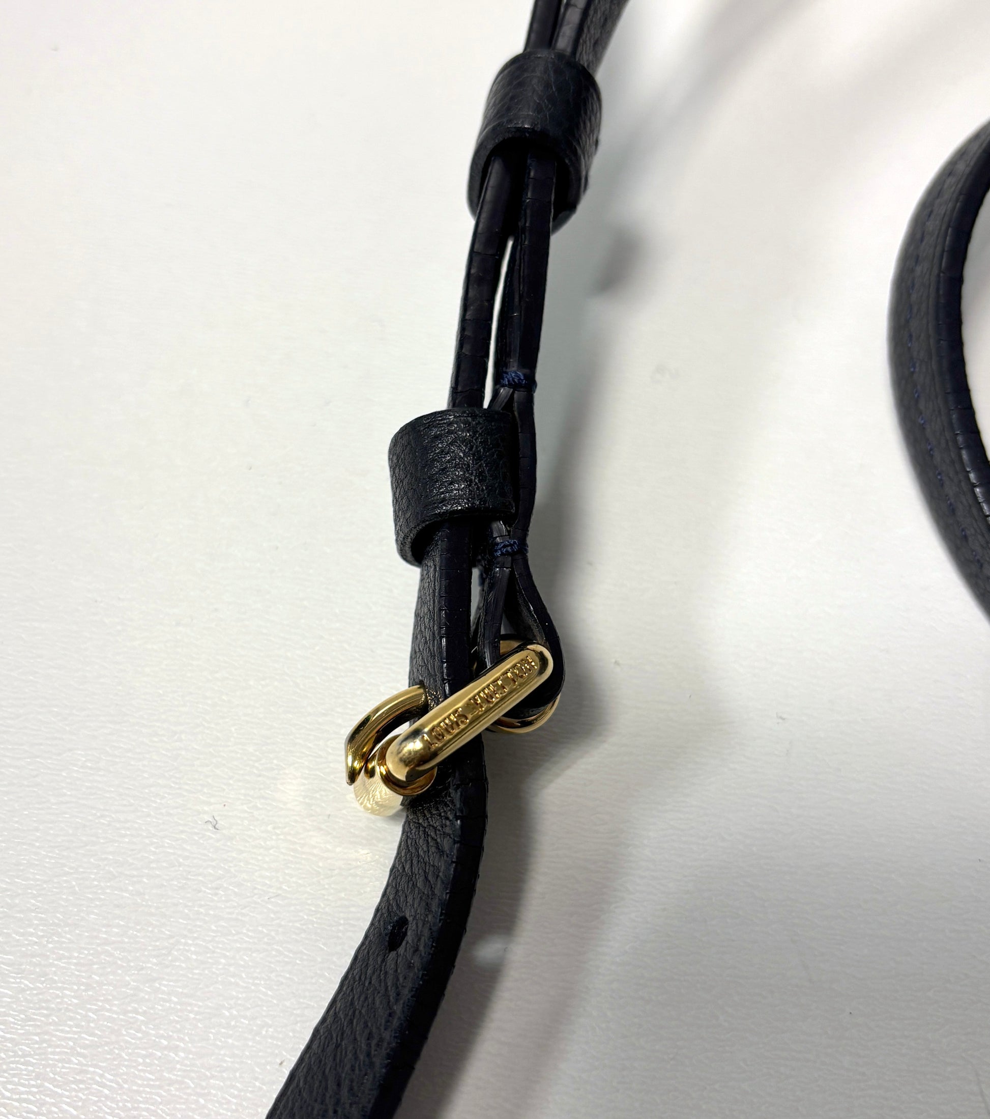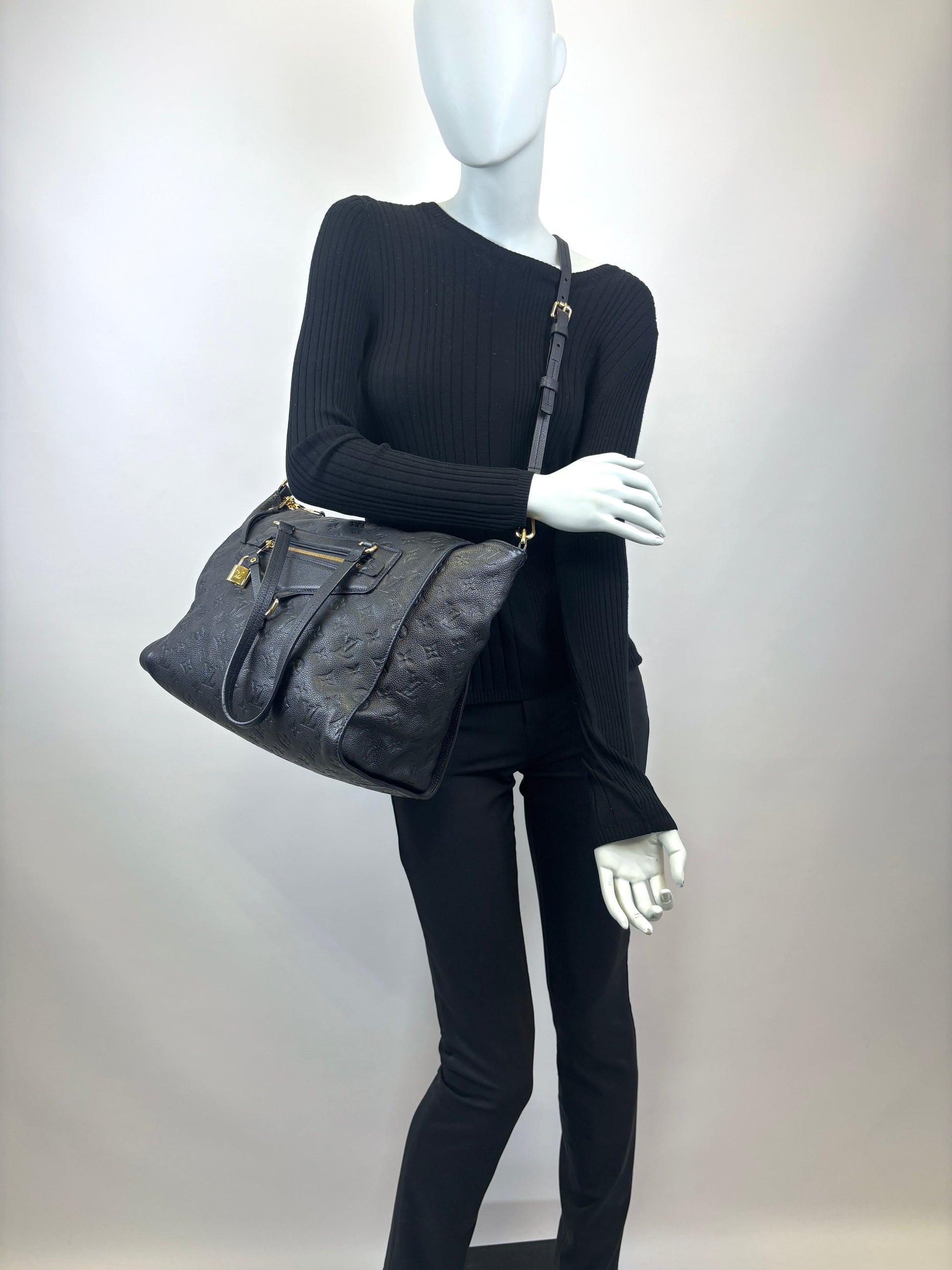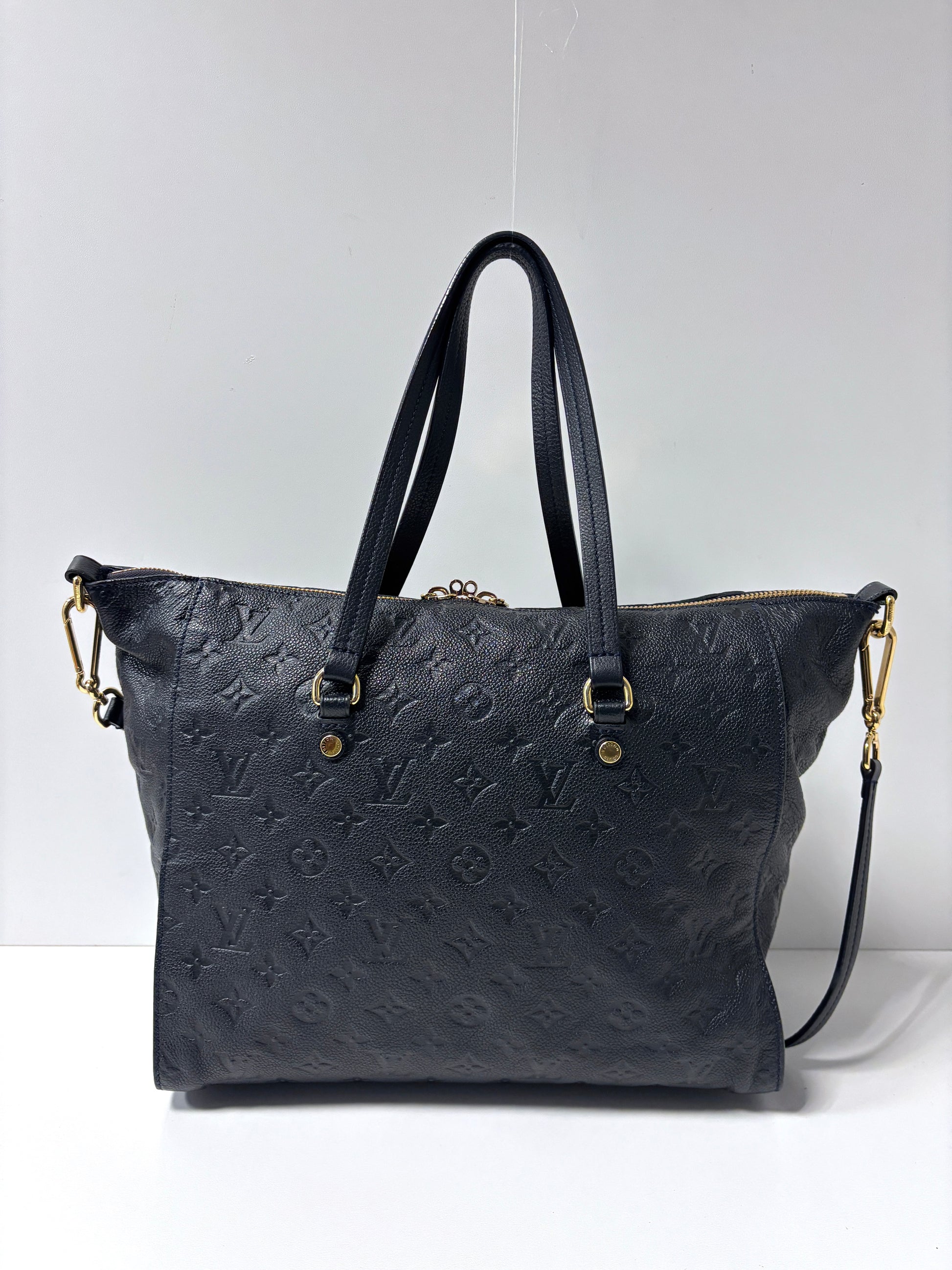 Louis Vuitton "Lumineuse" black leather shoulder bag. Hardware details in golden hardware. Micro sign in the handler edge, minimum and completely unnoticeable when wearing.