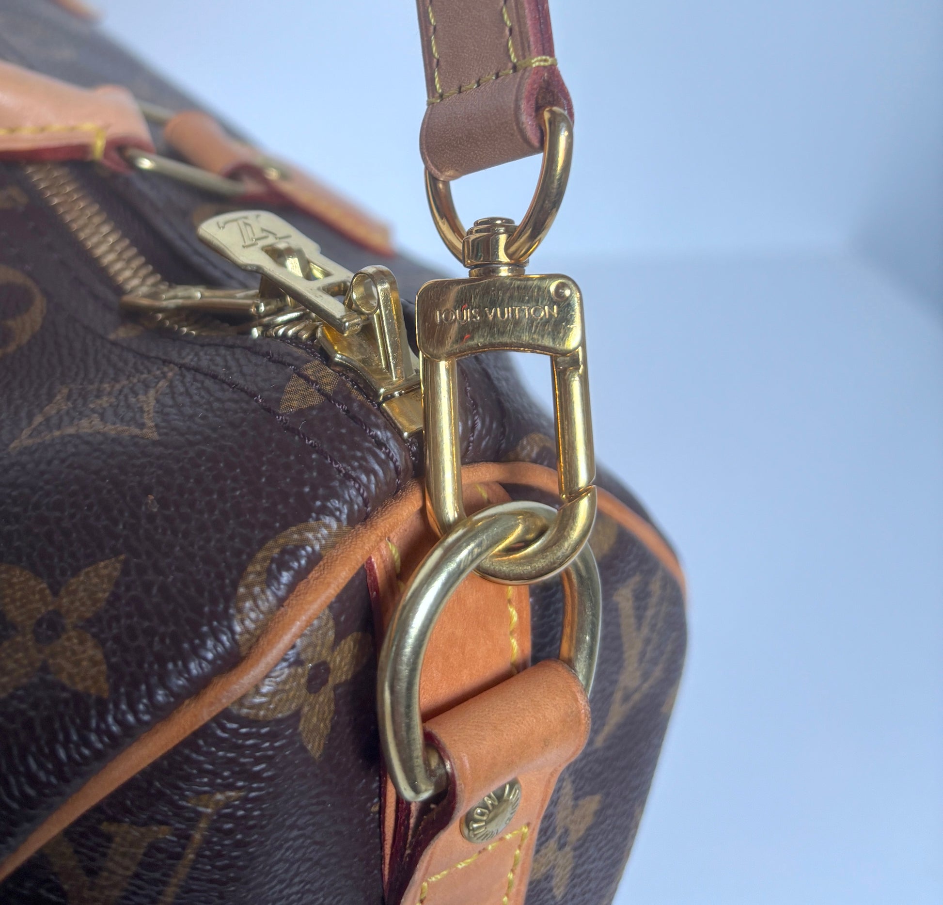 Classic double top handles, secure zipper closure, signature LV logo in premium coated canvas.