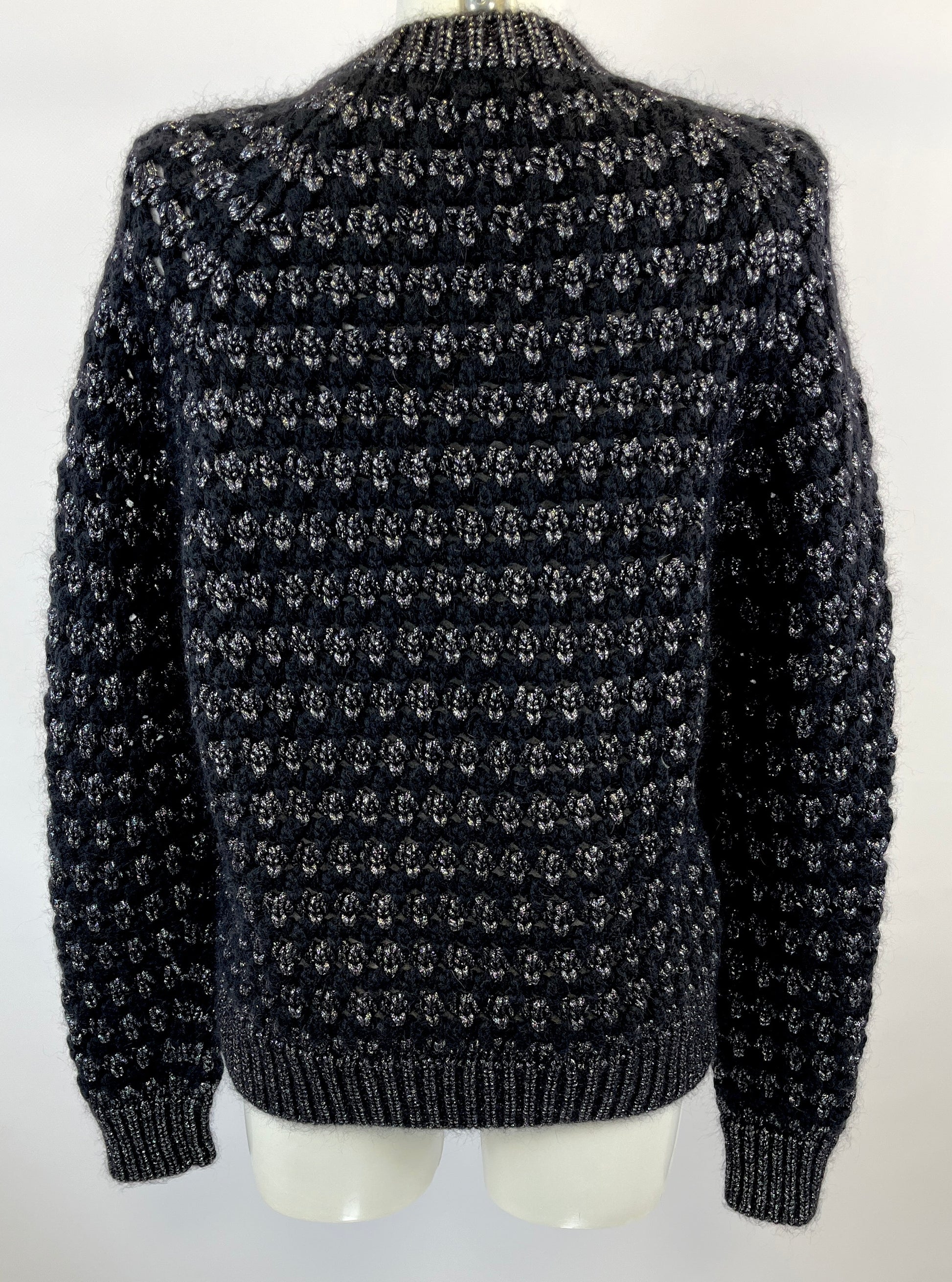 Long sleeve mohair, wool and lurex-blend sweater in black and silver by Saint Laurent.